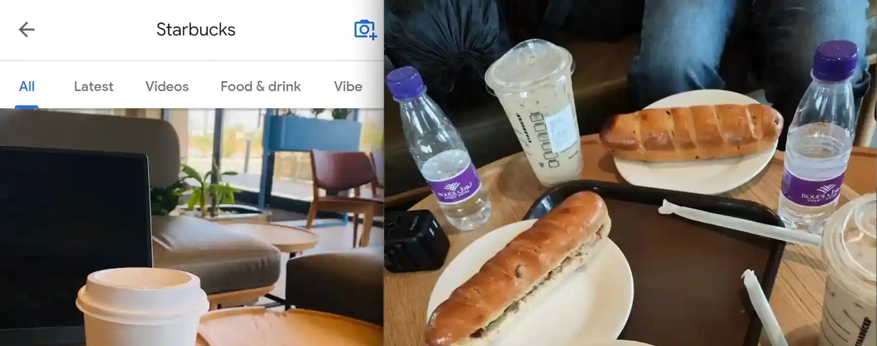 逐个筛查这些地点附近的「Starbucks」,几分钟内就可以找到熟悉的桌椅设计: