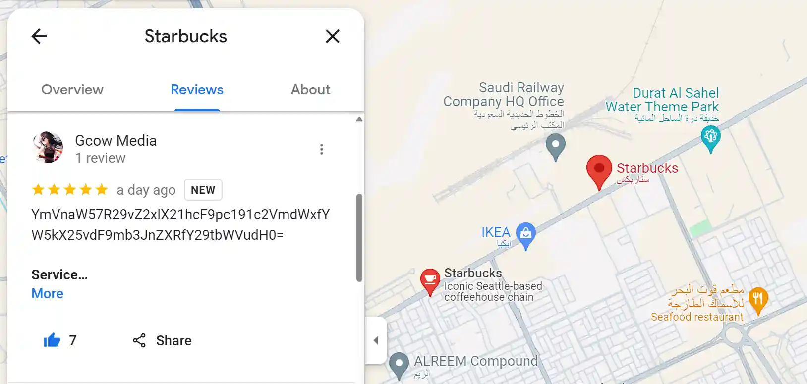 Flag 在 Google Map 该地点的评论中(Base64 编码过):