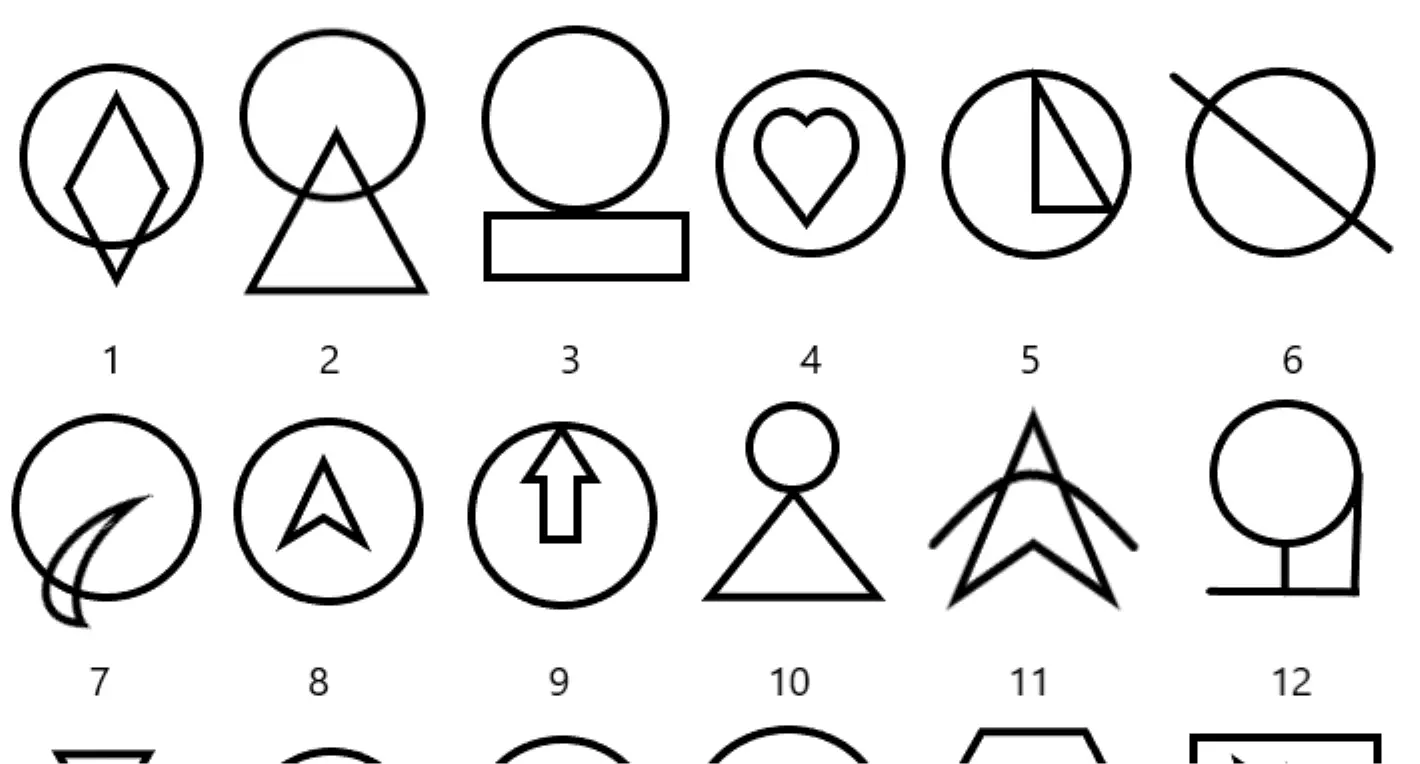 摩斯密码总共有三种状态:点 . 线 - 和空格(分隔字符)。分析题目图像,经常考公的同学应该不难看出,每个图形都可以视作两个基本图形组合在一起,题中出现图形的这两个基本图形之间交点数量有所不同: