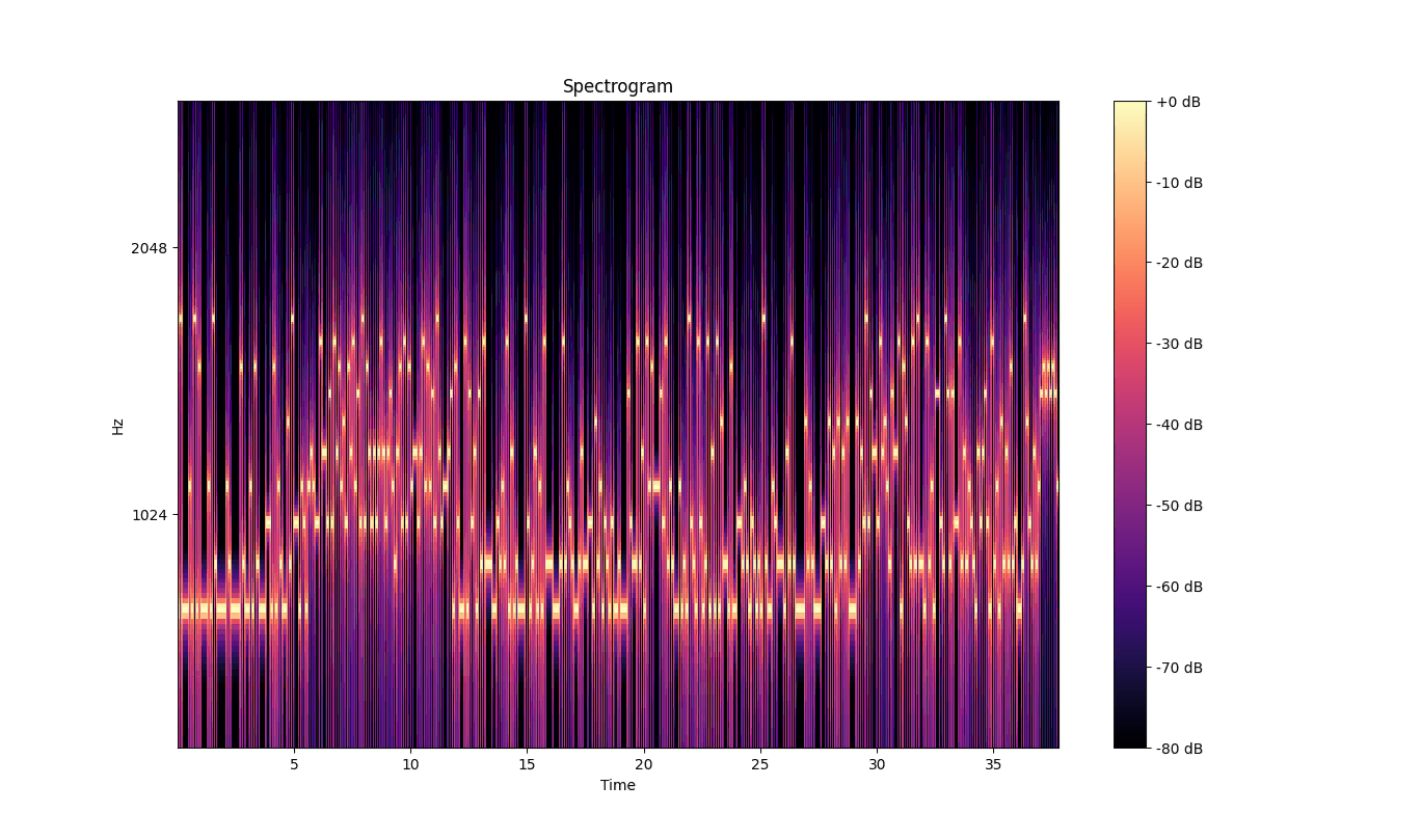 print(f"Time: {time_in_seconds:.1f}s, Frequency: {freq_at_max_amplitude:.2f}Hz")